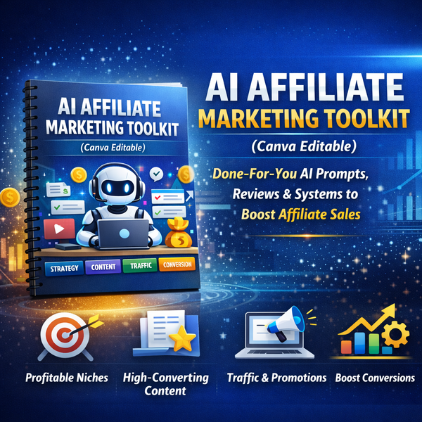 Get instant access to two premium Canva-editable AI toolkits designed to help you build, market, and scale an online business. This bundle includes AI systems for business growth and affiliate marketing—covering strategy, content, traffic, and conversions in one complete package.