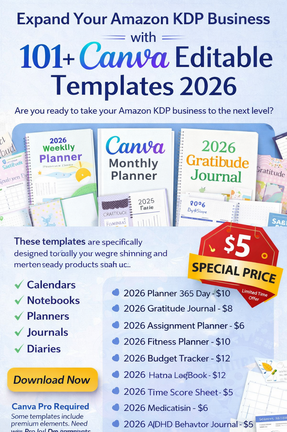 Expand Your Amazon KDP Business with 101+ Canva Editable Templates 2026